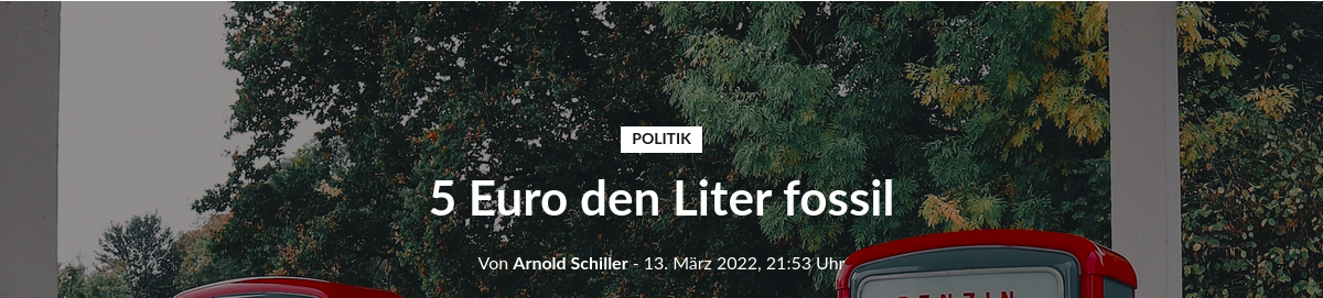 Fünf Euro den Liter Fossiltreibstoff ist ein Preis, der so hoch ist, dass nur in absoluten Ausnahmefällen noch Gründe geben mag einen fossilen Verbrenner zu betreiben.