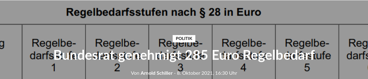 Das Leben eines Menschen ist der Bundesregierung 285 Euro wert und diese menschliche Existenz muss mit 285 Euro im Monat klar kommen. Berichtet wird in den Zeitungen, Zeitschriften und Fernsehen gänzlich anders darüber. Es wird der theoretische Maximalsatz für einen alleinstehenden Single über 25 Jahre in einem eigenen Haushalt getitelt.