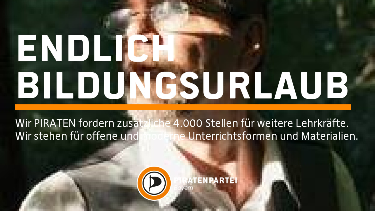 Wir PIRATEN setzen uns für die Einführung des Bildungsurlaubs ein, die durch die CSU seit 1974 verhindert wird. Dafür werden je Quartal zwei Tage vorgesehen.