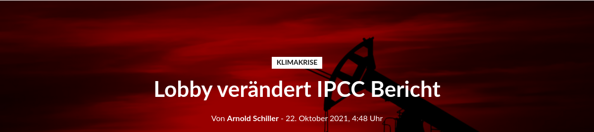 Produzenten wie Saudi-Arabien setzen sich für die Streichung der Empfehlungen ein, dass die Welt aus den fossilen Brennstoffen aussteigen muss, berichtet der Guardian https://www.theguardian.com/environment/2021/oct/21/oil-and-coal-rich-countries-lobbying-to-weaken-un-climate-report-leak-shows